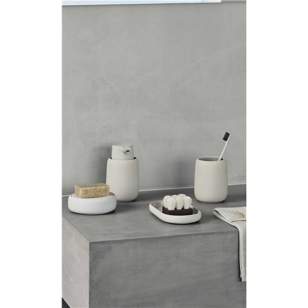 Sono Tablett in der Trendfarbe Moonbeam von Blomus. Stellen Sie Ihr Lieblingsshampoo oder luxuriöse Cremes auf das Tablett und schaffen Sie sich ein ganz eigenes Heim-Spa.