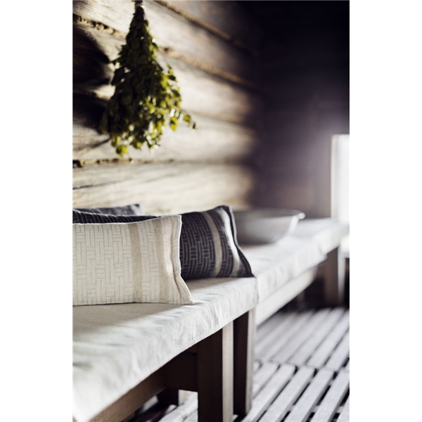 Tamminiemi-Saunaprodukte, benannt nach der Sauna von Ekudden in Finnland, sind eine Hommage an die Sauna und ihre versöhnliche Atmosphäre. Die Produkte bestehen aus Materialien, die so echt und rein sind wie Finnen auf der Saunabank. Das Saunakissen besteht aus 50 % Leinen und 50 % Baumwolle und hat ein schönes Muster.