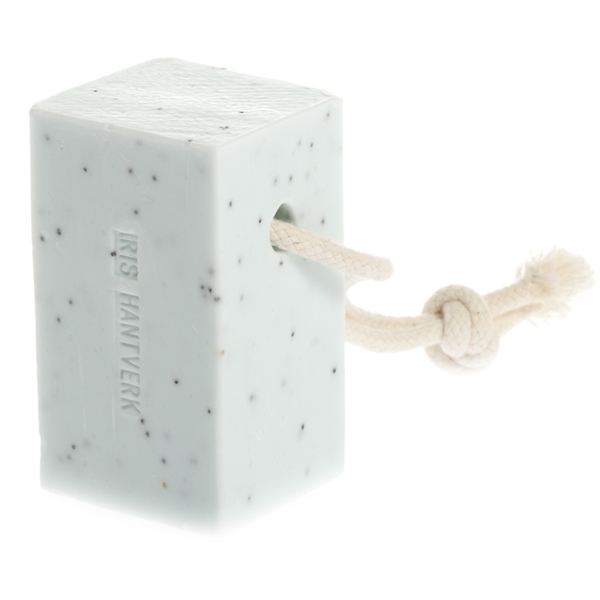 Wunderbare cremige Seife am Seil von Iris Hantverk. Die Seife ist mit echten ätherischen Ölen parfümiert. Die milde Seife ist praktisch zum Aufhängen in der Dusche.