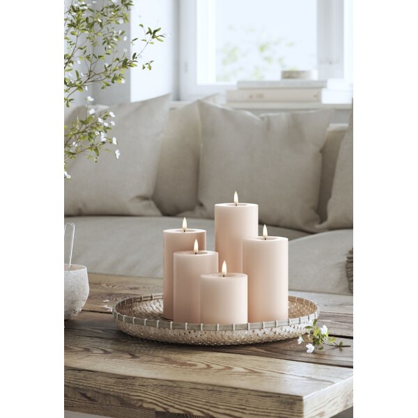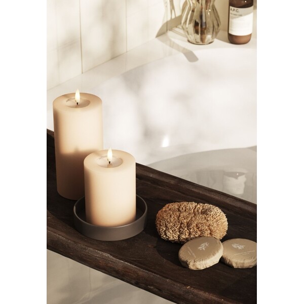 Schaffen Sie eine warme und einladende Atmosphäre mit dieser stilvollen LED-Blockkerze von DeluxeHomeart. Die Kerze hat ein realistisches Design mit einer verstärkten Spitze und WETLOOK™-Effekt, was ein authentisches Aussehen verleiht. Ausgestattet mit der patentierten 3D REAL FLAME™-Technologie für eine naturgetreue Flamme.