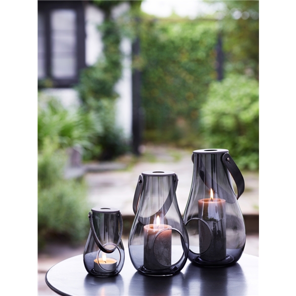 Design: Maria BerntsenDie Designerin Maria Berntsen hat die wunderschöne Design With Light (DWL)-Laterne aus mundgeblasenem Glas entworfen, die von Glasbläsern von Hand gefertigt wird, indem sie sorgfältig genau die richtige Menge Luft durch ein schmales Rohr blasen, um das Glas zu formen. Daher hat jede Laterne kleine, einzigartige Merkmale, darunter Luftblasen im Glas, die Ihrer Laterne einen ganz eigenen Charme verleihen. Die Laterne kann das ganze Jahr über als Lichtquelle oder Dekoration verwendet werden und lässt sich dank des schönen, robusten Griffs aus Kernleder sowohl drinnen als auch draußen nach Belieben bewegen. Diese Laterne ist aus rauchfarbenem Glas gefertigt, aber sie wird auch in klarem und mattiertem Glas hergestellt, und Sie können die verschiedenen Modelle gerne kombinieren, die überall in Ihrem Zuhause schön leuchten, wo Sie sie platzieren.Größe: Höhe: 29 cm.Material: Mundgeblasenes Glas mit Griff aus Kernleder Nicht spülmaschinenfestFarbe: Smoke