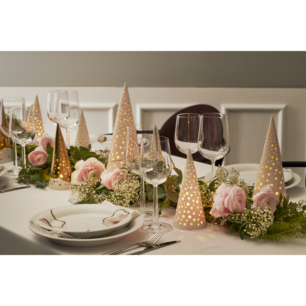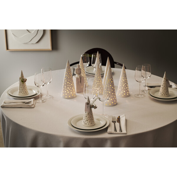 Die Nobili-Serie von Kähler in der stilvollen schneeweißen Farbe ist inspiriert von den tiefen nordischen Wäldern, die während der dunklen Wintermonate von glitzerndem Schnee bedeckt sind. Nobili schafft mit seinem stilvollen Design und der zurückhaltenden Farbpalette Licht und Behaglichkeit für Designliebhaber, die in ihrem Zuhause zu Weihnachten einen ruhigen Ton-in-Ton-Ausdruck bevorzugen. Die Nobili-Serie wurde von Mette Bache und Barbara Bendix Becker entworfen.