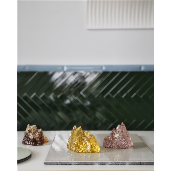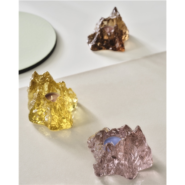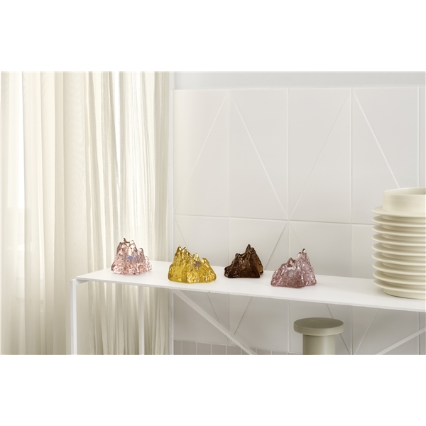 Die Serie The Rock wurde als Hommage und Paraphrase zum 50-jährigen Jubiläum von Snowball geschaffen; Ann Wolffs ikonischer Klassiker. Die vertraute unregelmäßige Oberfläche wird wiederverwendet, aber The Rock ist gleichzeitig ein Kunstwerk für sich. Der Teelichthalter aus Glas ist in verschiedenen Farben erhältlich, mit dramatischen Silhouetten und einer zeitgenössischen Farbpalette. Design von Hanna Hansdotter.