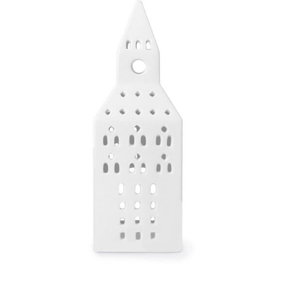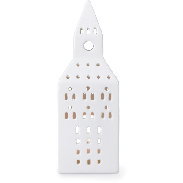 Erleben Sie klassische Architektur interpretiert in glasiertem Keramik durch Kählers handgefertigte Designphilosophie. Mit dem Lichthaus Urbania Kirchturm würdigt Kähler die natürliche Schönheit des Lichts und die Authentizität handgefertigter Keramik in einer poetischen und eleganten Formensprache. Das Kirchturm-Lichthaus ist 20 cm hoch und wurde, wie der Rest der beliebten Urbania-Serie ikonischer Lichthäuser von Kähler, von Mette Bache und Barbara Bendix Becker entworfen. Urbania Kirchturm ist von Tradition geformt und umarmt wunderschön die warme und authentische Atmosphäre, die in Kirchtürmen im ganzen Land zu finden ist. Und mit jedem Fenster, das sorgfältig von Hand ausgeschnitten wird, erhalten Sie immer eine stilvolle und gemütliche Silhouette, bei der das flackernde Licht des Teelichts in der schneeweißen Keramik des Urbania-Lichthauses reflektiert wird und spielerische Sammlungen von Licht und Schatten um es herum schafft.