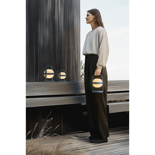 Leicht und modern im Ausdruck, aber dennoch seinem Ursprung treu. Mit der Rosendahl Soft Spot Solar Circular-Laterne aus recycelten, GRS-zertifizierten Materialien mit einem Kunststoffrahmen in einem tiefen Waldgrün erhalten Sie eine stilvolle und zukunftsweisende Ergänzung zur beliebten Soft Spot Solar-Laterne. Die Rosendahl Soft Spot Solar Circular in Waldgrün besteht aus wiederholten Kreisen, die die "schwebende Lichtkugel" umschließen, schützen und tragen – und gleichzeitig Fuß und Griff in einem bilden. Bei der Rosendahl Soft Spot Solar Circular sind sowohl der kombinierte Griff/Fuß als auch die Lichtkugel aus recycelten, GRS-zertifizierten Materialien gefertigt, die wie der Rest der Laterne für die Demontage konzipiert sind. Die Laterne verfügt über ein integriertes Solarpanel, was bedeutet, dass die Sonnenstrahlen das wiederaufladbare Batterie mit Solarenergie versorgen. Zeitlos. Funktional. Genau so, wie wir Rosendahl kennen. Auch wenn Sie das Pech haben, auf einige graue Tage zu stoßen, bedeutet das nicht, dass Sie auf das ganz besondere stimmungsvolle Licht der Laternen für Ihre Outdoor-Momente – oder Indoor-Gemütlichkeit – verzichten müssen. Die Soft Spot Solar Circular kann auch mit einem USB-C-Kabel aufgeladen werden (Kabel und Ladegerät sind nicht im Lieferumfang enthalten). Und wenn der integrierte Dämmerungssensor aktiviert ist, sorgt er dafür, dass das Licht automatisch ein- und ausgeschaltet wird. Wie der Name schon sagt, ist das Lieblingswetter der Laterne natürlich Sonnenschein, aber sie hält problemlos sowohl Regen als auch Wind stand und kann bei Temperaturen bis zu minus 20 Grad draußen stehen. Egal, ob Sie diese große Laterne mit einer Höhe von 25 cm oder das kleine Modell mit einer Höhe von 18,5 cm wählen, die Laterne kann auf eine einzige Ladung 15 bis 18 Stunden lang kontinuierlich leuchten. Für zusätzlichen Komfort ist die Soft Spot Solar Circular mit einer energiesparenden Auto-Off-Funktion ausgestattet, die sicherstellt, dass sie nach 6 Stunden erlischt. Und wenn der Lichtsensor aktiviert ist, schaltet sie sich am nächsten Tag automatisch wieder ein, wenn die Dunkelheit hereinbricht. Mit der Leichtigkeit, dem praktischen Design und den wiederaufladbaren Batterien der Laterne haben Sie die Freiheit, das Licht mitzunehmen – im Haus, um den Tisch und im Garten. Verwenden Sie sie genau dort, wo Sie möchten, dass wir uns um das Licht versammeln. Mit der waldgrünen Farbe, kombiniert mit dem klassischen, intuitiven und einfachen Design, erhalten Sie eine Farbe, die von der Stimmung inspiriert ist, die Sie in der fantastischen Unendlichkeit der tiefen Wälder finden – ein Teil der gemeinsamen Natur, um die wir uns kümmern müssen. Gleichzeitig erhalten Sie eine moderne und zeitgemäße Farbe, die perfekt in die heutigen allgemeinen Einrichtungstrends passt und sich wunderschön in das Wohnzimmer, die Küche und die Terrasse einfügt, wo sie Nähe, Gemütlichkeit und Gemeinschaft ausstrahlen wird. Mit der Soft Spot Solar Circular erhalten Sie das bekannte tragbare, kabellose Beleuchtungsdesign, das Sie überallhin mitnehmen können – in einer stilvollen, GRS-zertifizierten Weiterentwicklung mit Fokus auf Zirkularität. Rosendahl möchte die zirkuläre Wahl einfach und zugänglich machen. Mit der Rosendahl Soft Spot Solar Circular aus GRS-zertifizierten recycelten Materialien wird das erklärte Ziel weiterverfolgt, Design zu schaffen, das Bestand hat. Erhältlich in verschiedenen Größen.
