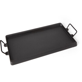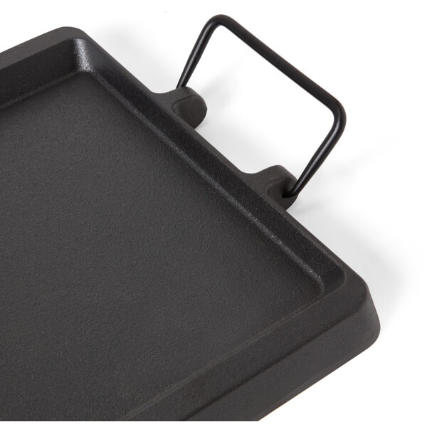 Hergestellt aus hochwertigem Gusseisen, das überlegene Stabilität und Wärmespeicherung bietet, garantiert es gleichmäßig gegarte Speisen bei jeder Verwendung. Ausgestattet mit klappbaren Griffen, die während des Kochens nicht heiß werden, was die Handhabung der Grillplatte auch im heißen Zustand einfach und sicher macht.