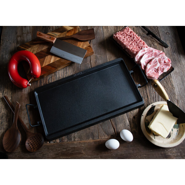 Die Grillplatte ist speziell für den Innenbereich konzipiert und funktioniert perfekt auf Induktions-, Keramik-, Elektro- und Gasherden und kann auch als Backstahl im Ofen verwendet werden. Ideal für eine Vielzahl von Gerichten, von Smash-Burgern und Entrecôte bis hin zu Schnitzel und asiatischer Küche wie Yakiniku, Yakitori und gebratenen Nudeln.