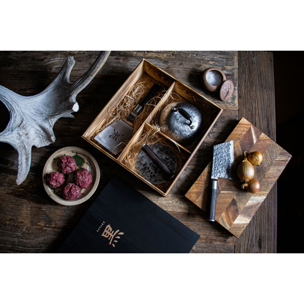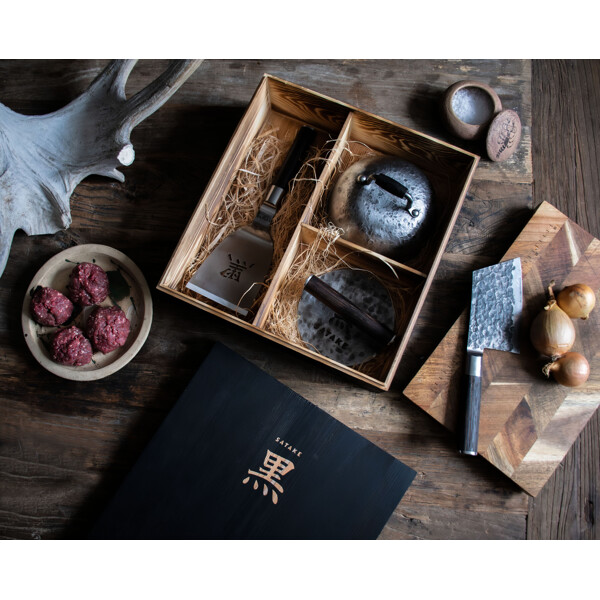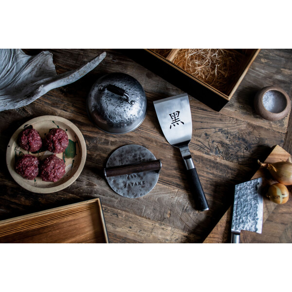 Burgerpresse aus handgeschmiedetem Stahl mit Holzgriff
