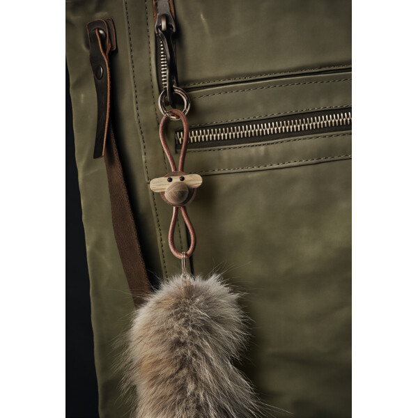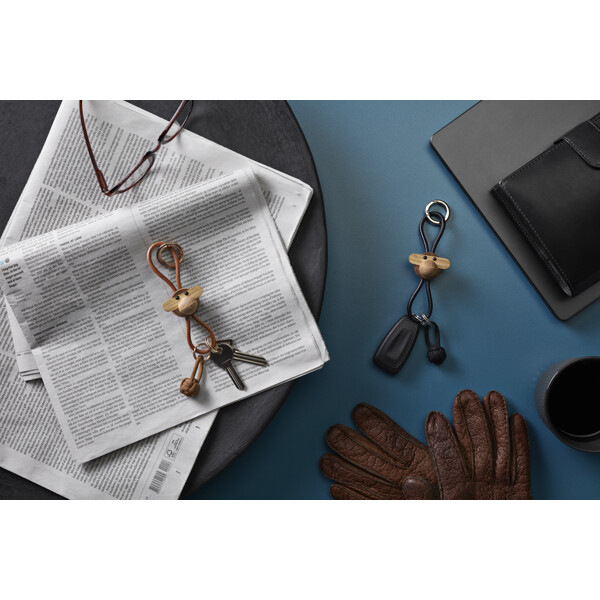 Nehmen Sie Kay Bojesens geliebte Klassiker und Ihre Liebe zum original dänischen Design überallhin mit. An der Tasche. Am Gürtel. Oder mit den Autoschlüsseln. Dieser Kay Bojesen-Schlüsselanhänger hat den charakteristischen Kopf des Affen, gefertigt aus der bekannten Komposition von schön geöltem FSC®-zertifiziertem Teakholz und kontrolliertem Limba, und wird durch eine elegante und praktische naturfarbene Schnur aus echtem Leder ergänzt. Die Schnur kann in Bezug auf die Figur nach oben und unten verstellt werden, sodass Sie Ihren ganz eigenen Ausdruck kreieren können. Oben befindet sich ein großer goldfarbener Schlüsselring, graviert mit Kay Bojesen Denmark, der sowohl als stilvolles Detail als auch als praktische Funktion mit seinem cleveren Karabinerhaken für einfaches Öffnen und Schließen dient. Unter der Figur hängen drei zusätzliche Schlüsselringe, sodass Sie viel Platz für all Ihre Schlüssel haben. Mit einem stilvollen und dekorativen Schlüsselanhänger von Kay Bojesen Denmark können Sie dem Alltag einfach eine persönliche Note verleihen und original dänisches Design überallhin mitnehmen – egal, ob Sie diese Version mit dem legendären Affen oder den klassischen Singvogel als Ihren stets treuen Begleiter wählen. Kay Bojesen war ein Meister darin, seinen Holzfiguren kleine Details hinzuzufügen. Er fand die Magie im natürlichen Material und mit seinem außergewöhnlichen Talent für Design nahm eine verspielte Figur nach der anderen in seiner Fantasie Gestalt an und wurde in seinen Händen lebendig. Zwei seiner größten Klassiker sind zweifellos der Affe und der Singvogel. Und auch wenn der Affe in dieser Schlüsselanhängerversion auf nur 3 cm Höhe verkleinert wurde, trägt er immer noch ein reiches Erbe der Designgeschichte von Kay Bojesen mit sich, wohin Sie auch gehen. Kay Bojesen schuf seine erste Holzfigur 1922 und eröffnete zehn Jahre später ein Geschäft und eine Werkstatt in der Bredgade in Kopenhagen. Seitdem ist Kay Bojesen ein Synonym für original dänisches Design und ein verspieltes Universum ikonischer Holzfiguren, geschaffen mit einem außergewöhnlichen Auge für Details, Humor und der Freude an einzigartigem Qualitäts-Handwerk. Deshalb sagen wir, dass Kay Bojesen seit 1922 das Original ist. Der Schlüsselanhänger wird in einem wiederverwendbaren Non-Woven-Beutel geliefert und ist mit einem Kay Bojesen-Tag versehen.