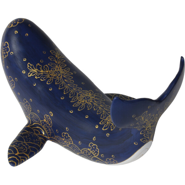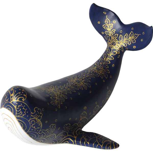 Machen Sie einen kühnen Eindruck mit unserer bezaubernden handgefertigten Wal. Sie wird geschickt in Thailand aus recycelten Papierkernen hergestellt und ist mit handgemalten thailändischen Motiven verziert, die von der exquisiten traditionellen Kunststil inspiriert sind. Dieser größere Wal dient als fantastisches dekoratives Element, das Ihr Zuhause mit einzigartiger Kunstfertigkeit und nachhaltiger Eleganz erfüllt.