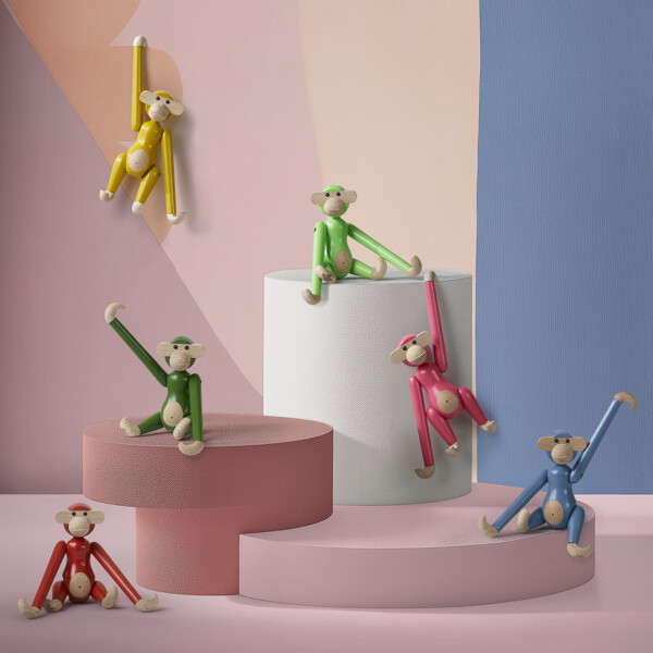 Ein farbenfrohes Original in einem nostalgischen und innovativen Look. Kay Bojesens ikonischer Affe ist ein bekannter und geliebter Stimmungsaufheller für Groß und Klein. Mit dem Mini-Affen aus Buchenholz, bemalt in den Originalfarben aus den Archiven, wird die Freude noch größer. Die farbige Mini-Version ist inspiriert von den Farben einer Originaltapete, die Kay Bojesen Ende der 1940er Jahre für das Kinderzimmer entworfen hat. Man sieht förmlich die Originalität und spürt die Retro-Vibes in den gedämpften Farben, die den kühlen Ausdruck des Buchenholzes schön hervorheben. Die Affen sind 9,5 cm hoch und aus FSC®-zertifiziertem Buchenholz gefertigt, das an Händen und Füßen, Gesicht und Bauch sichtbar ist und dem neuen Mini-Affen einen leicht frechen und jugendlichen Charakter verleiht. Die bemalten Mini-Affen sprühen vor Freude und Einfallsreichtum und setzen Kay Bojesens ursprüngliche Geschichten in Holz schön und selbstbewusst in einen neuen Kontext. Gleichzeitig bleiben sie dank der klassischen Farben aus Kay Bojesens ursprünglichem Universum ikonisch, was den Mini-Affen zu einem spielerischen Element in einer modernen Einrichtung macht. Er zaubert ein Lächeln hervor und schafft mit seinem pfiffigen Auftreten und seinem farbenfrohen Aussehen einen einzigartigen Stil – egal, wo er einzieht. Ein Muss für den Designliebhaber, der schon alles hat. Oder für uns, die nicht genug von Kay Bojesens Affen und ihrer gemütlichen Gesellschaft bekommen können.