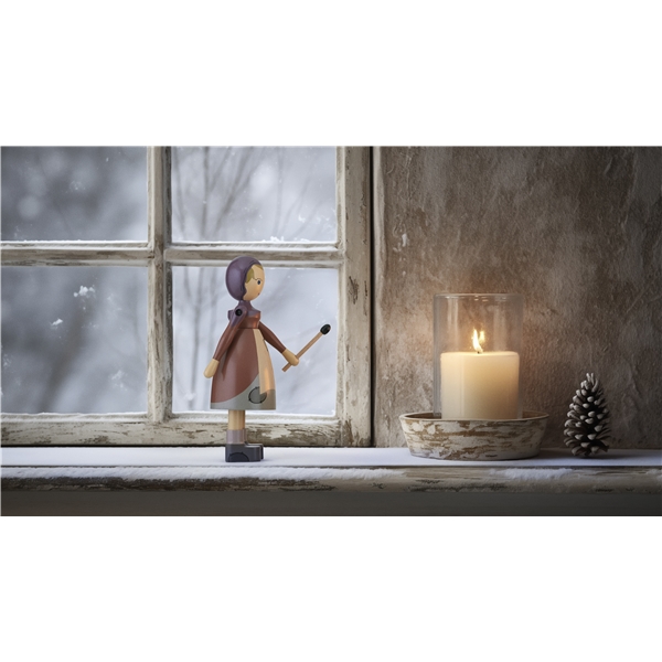 Lassen Sie das Abenteuer durch originelle Geschichten in Holz weiterleben. In Odense wurde 2021 das Museum H.C. Andersens Hus eröffnet, und in diesem Zusammenhang begannen das Museum und Kay Bojesen Dänemark eine Zusammenarbeit. Die Idee war, einige der bekanntesten und beliebtesten Figuren aus den weltberühmten Märchen in Kay Bojesens Universum von Originalgeschichten in Holz zu interpretieren. Die Nachtigall, die Hirtin und der Schornsteinfeger und der Sandmann waren die ersten, die in die Regale des Museumsshops in Odense einzogen – und natürlich auch in Ihr lokales Designgeschäft. Und nun hat auch Das kleine Mädchen mit den Schwefelhölzern den Weg in die Wärme gefunden. In Kay Bojesens Interpretation trägt sie eine Kapuze, die über die Schultern fällt. Sie hat Flicken auf Kleid und Schürze, die gedämpfte Farben haben, was unterstreicht, dass das kleine Mädchen aus armen Verhältnissen stammt. Ihr warmes Lächeln und ihr mildes und unschuldiges Ausdruck kommen von den schönen Erlebnissen, die sie in ihrem inneren Auge im Licht der Flammen sieht, wo sie an einem kalten Silvesterabend die Fantasie mit einigen fantastischen Traumbildern voller Freude und Geborgenheit weckt. In der Hand hält sie ein Schwefelholz, das die Geschichte vollendet. Das kleine Mädchen mit den Schwefelhölzern ist 14,5 cm hoch und aus FSC®-zertifiziertem Buchenholz gefertigt, und die manuelle Herstellung mit Farbe und Druck erfolgt mit der großen Präzision und Sorgfalt, die die Holzfiguren von Kay Bojesen auszeichnet. Die Form basiert auf der ursprünglichen Lise-Figur aus Kay Bojesens Archiv, die einfach und minimalistisch, aber voller Leben und Seele ist. Dies verleiht dem kleinen Mädchen mit den Schwefelhölzern das Gefühl von Magie und Märchen, das im Einklang mit Kay Bojesens Geist und der Geschichte steht, die er schuf, als er seine fantasievollen Figuren entwarf.