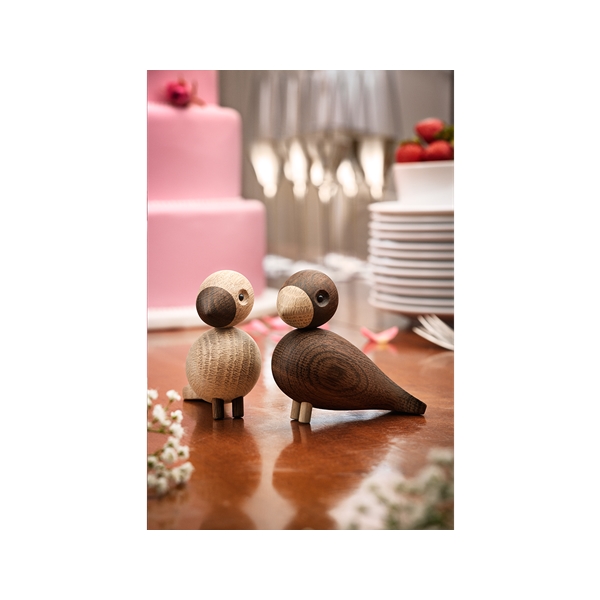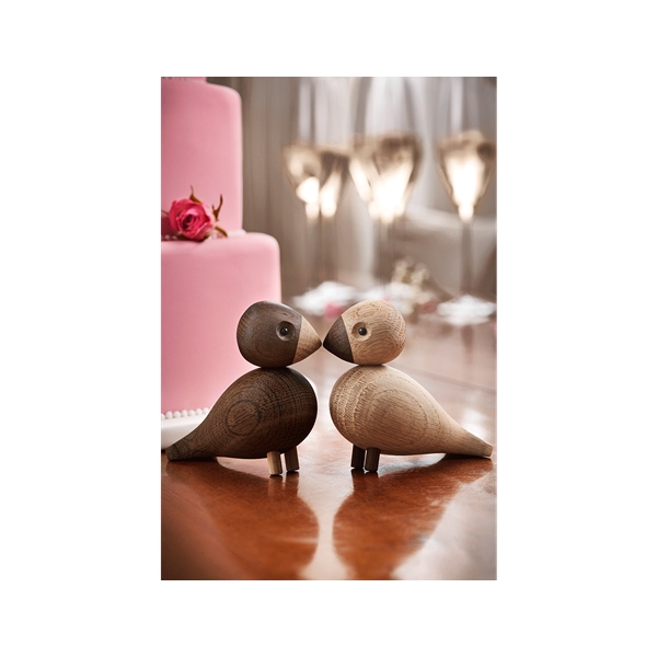 Schenken Sie ein Geschenk, das ein Leben lang hält. Kay Bojesens Welt der Holzfiguren, die kürzlich um Singvögel erweitert wurde, hat ein paar neue Familienmitglieder bekommen. Die Turteltauben sehen wirklich wie ein Liebespaar aus, wenn sie Schnabel an Schnabel stehen. Sie sind sowohl auf dem Schreibtisch als auch auf der Fensterbank dekorativ und erinnern an die Liebe. Das verliebte Paar ist ein ideales Geschenk zur Hochzeit und für alle, die dänisches Design lieben.
