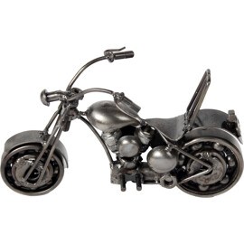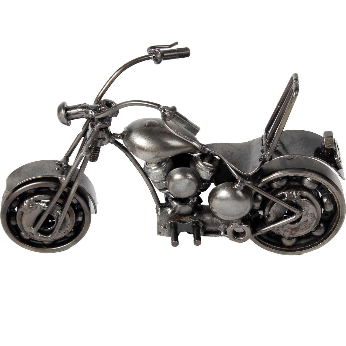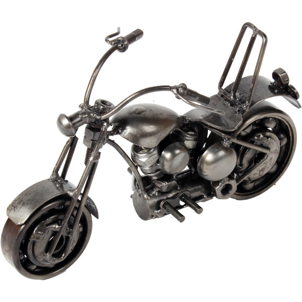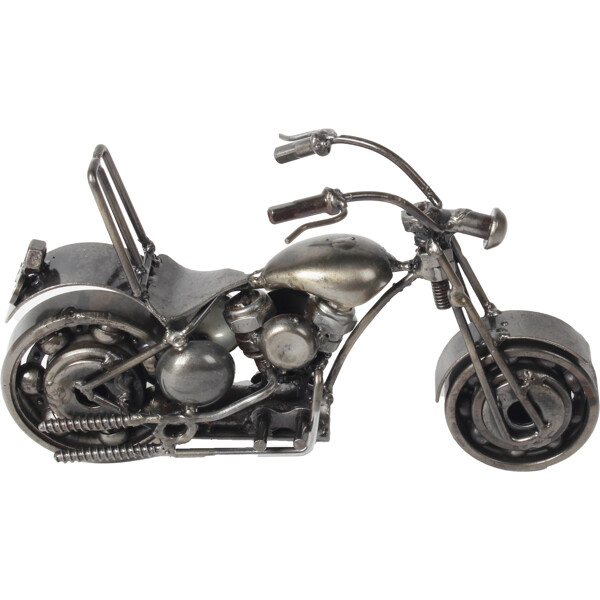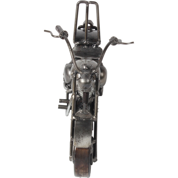 Erleben Sie Freiheit mit unserer handgefertigten Cruiser Bike-Skulptur, hergestellt aus recyceltem Metall von geschickten Handwerkern. Jedes Detail, vom Lenker bis zu den Motorkomponenten, zeigt eine Verwandlung von entsorgten Materialien zu einem Symbol für Stil und Abenteuer. Diese einzigartige Skulptur ist ideal für Schreibtische oder Regale und besitzt eine fesselnde industrielle Ästhetik aus wiederverwendeten Teilen. Sie feiert den Cruising-Lifestyle und umweltbewusstes Handwerk, was sie perfekt für Biker, Sammler und Designenthusiasten macht. Maße: Ungefähr 5 x 20 x 15 cm Umweltfreundlich 100 % Handgefertigt Recyceltes Metall