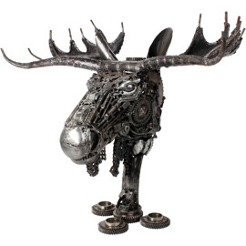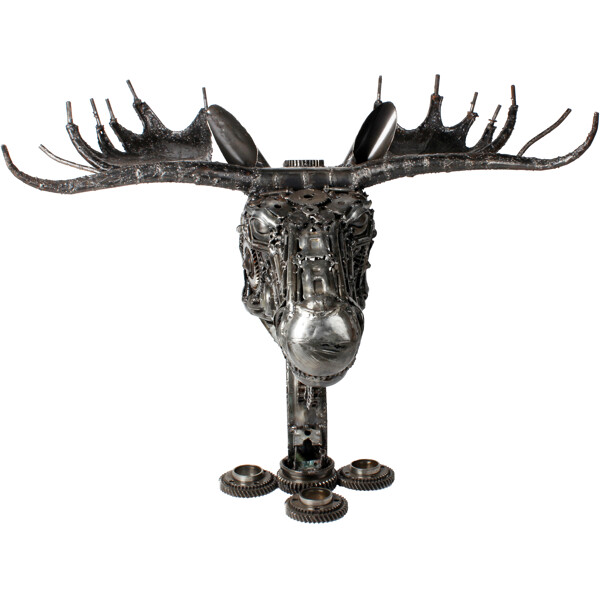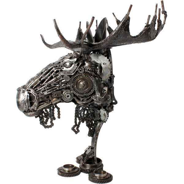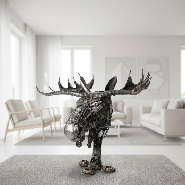 Hinterlassen Sie einen unvergesslichen Eindruck mit unserem handgefertigten Elchschädel aus Metall, einem wirklich bemerkenswerten und zu 100 % handgefertigten Kunstwerk. Dieses faszinierende Elchkopf ist geschickt aus recyceltem Metall zusammengesetzt und verwandelt weggeworfene Komponenten in eine kraftvolle und würdige Darstellung eines der ikonischsten Geschöpfe der Natur.