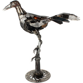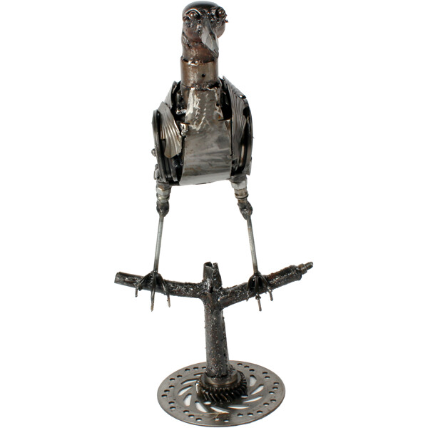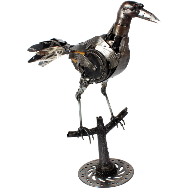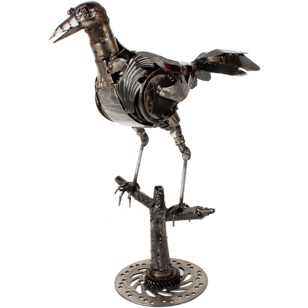 Unsere geschickten Handwerker haben recyceltes Material in eine fesselnde und detaillierte Darstellung der intelligenten Krähe verwandelt. Jedes Zahnrad, jede Schraube und jede Metallkomponente ist durchdacht integriert, um ihren schlanken Körper, den scharfen Schnabel und den robusten, von der Natur inspirierten Ast, auf dem sie sitzt, zu formen. Diese Skulptur fängt perfekt die Essenz dieses klugen Vogels ein und kombiniert industrielle Ästhetik mit natürlicher Eleganz.