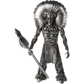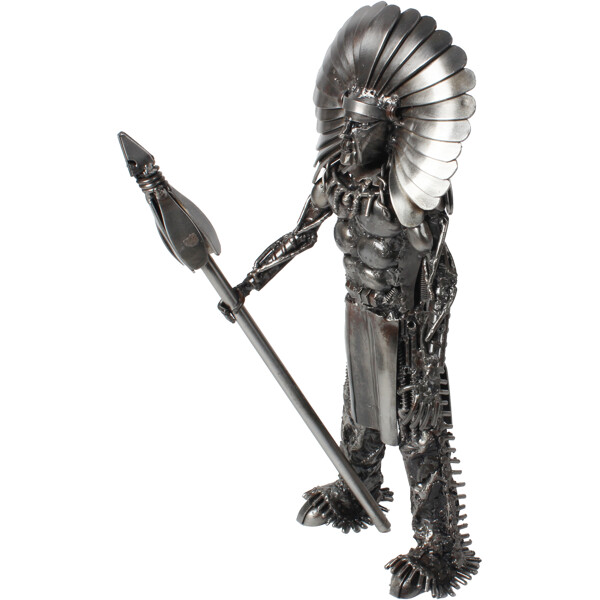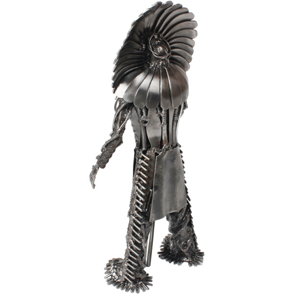 Erneuern Sie Ihr Zuhause mit unserem handgefertigten Stammeskrieger aus Metall, einem einzigartigen, zu 100 % handgefertigten Kunstwerk aus recyceltem Metall. Diese auffällige Figur ehrt die Kraft der Vorfahren und fügt sich mit ihrem markanten industriellen Charme in jede Einrichtung ein. Die detaillierte Anordnung der Metallfragmente schafft eine faszinierende Textur und Tiefe und macht sie zu einer perfekten Ergänzung für Ihr Zuhause oder Büro, um einen Hauch von kühner Charakterstärke und mechanischer Schönheit zu verleihen.