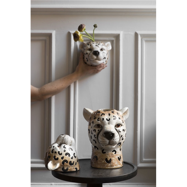Cheetah Vase von ByOn. Die Geparden-Vase ist majestätisch und nimmt mit ihrer starken Aura und Verspieltheit Raum im Zuhause ein. Schön, um Blumen darin zu haben, aber ebenso schön ohne als Statement-Stück. Die Cheetah-Vase und der schöne Gepard machen den Alltag ein wenig farbenfroher.