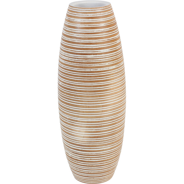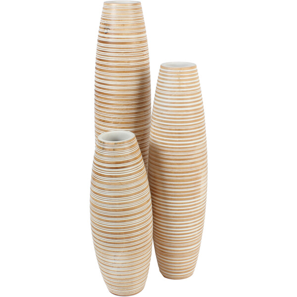Erneuern Sie Ihr Wohnzimmer mit der natürlichen Schönheit und dem handwerklichen Reiz unserer handgefertigten Holzdekorvase. Handgefertigt in Thailand, hat jede Vase ein markantes Streifendesign, das Wärme und Textur in jede Umgebung bringt. Diese umweltfreundliche Vase verkörpert echtes Handwerk und ist eine ausgezeichnete Wahl, um nachhaltige Kunst in Ihr Zuhause zu integrieren. Erhältlich in verschiedenen Größen.