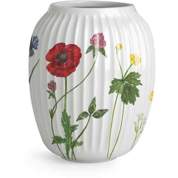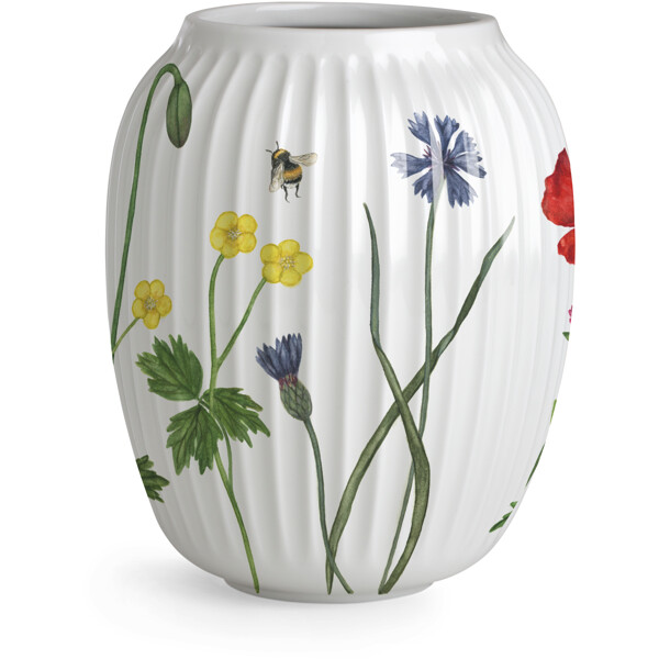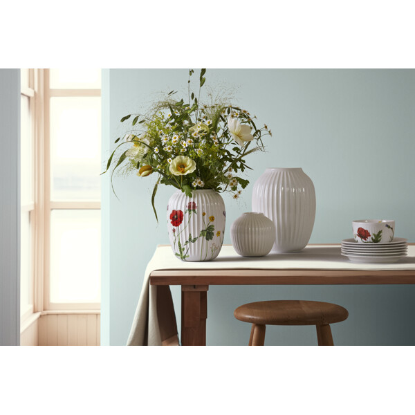 Blühende Farben, Formen und das Gefühl einer authentischen Sommerstimmung. Mit Hammershøi Summer von Kähler kann man fast die Sonnenstrahlen und die warme Sommerbrise spüren, wenn man auf der Terrasse, dem Balkon oder im Sommerhaus Kaffee und Leckereien serviert. Hammershøi Summer ist inspiriert von den abenteuerlichen Formen, Farben und Gefühlen des dänischen Sommers, und für die Saison 2025 hat ein Strauß der schönsten Wiesenblumen seinen Weg in die beliebte Serie gefunden. Die Hammershøi Summer-Vase, verziert mit dem Wiesenblumenthema, misst 21 cm in der Höhe und ist unmöglich zu übersehen – sowohl in Bezug auf die neuen farbenfrohen Hammershøi Summer-Dekorationen mit Wiesenblumen als auch auf die Blumen, die man selbst pflückt. Mit Hammershøi Summer und den Wiesenblumen auf den Wiesen helfen wir, den Sommer anzukündigen, genau wie die Wiesenblumen uns daran erinnern, den Moment zu genießen mit ihrer vielfältigen Blüte, die oft wie ein Teppich über der Wiese liegt, während sie versprechen, in den kommenden Jahren wieder zu blühen. Das Wiesenblumenthema ist auf die gleiche Weise gemalt wie die anderen Themen in der Hammershøi Summer-Serie, bei der Pflanzen und Blumen fast spontan über die klassischen Rillen der weißen Keramikteile zu wandern scheinen. Es ist, als ob sie fast sprießen, fast über das Porzellan tanzen mit ihren verschiedenen asymmetrischen Richtungen. Wenn Sie bereits andere Teile der Hammershøi Summer-Serie besitzen, wird die Vase eine schöne Ergänzung zu den anderen Themen sein und eine fröhliche und gemütliche Sommerstimmung auf dem Tisch und im ganzen Haus vervollständigen, während Sie die authentische Nostalgie in Kählers handgefertigten Designtraditionen genießen. Die Motive wurden von der Künstlerin Rikke Jacobsen auf dem bestehenden Hammershøi-Porzellan entworfen, das von Hans-Christian Bauer gestaltet wurde. Mit ihren schönen Aquarellen schafft sie detaillierte Motive, bei denen Flora und Fauna eine durchgehende Rolle spielen und die Stimmung der Natur und der Jahreszeiten um uns herum perfekt einfangen.