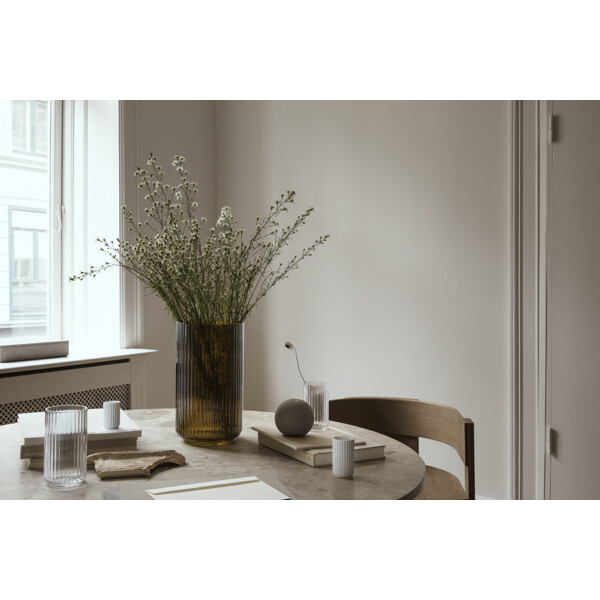 Design: Lyngby Porzellan In ihrer reinen und einfachen Form kennzeichnet die Lyngby Vase eines der bekanntesten Produkte von Lyngby Porzellan. Die Vase wurde 1936 eingeführt, aber erst in den 1950er Jahren wurde sie gefragt und populär. Die Vasen eignen sich hervorragend für kleinere oder größere Blumensträuße, je nach gewählter Größe. Die Vase kann auch als Skulptur für sich oder zur Aufbewahrung verschiedener Küchenutensilien oder für den Schreibtisch dienen. Die Lyngby Vase ist ein schönes Beispiel für die neue funktionale Welle, bei der edles Handwerk mit moderner Technik und einem sehr ungewöhnlichen Design zusammenkommt. Eine Neuschöpfung von sehr hoher Qualität. Die Lyngby Vase ist in verschiedenen Größen erhältlich und auch als Bodenvase in der Größe 38 cm verfügbar. Die Vase gibt es aus Porzellan sowie aus Glas in verschiedenen Farben. Denken Sie daran, dass sich am Boden der Lyngby Vase das bekannte, handgedruckte Monogramm Dänemark-Lyngby befindet. Ihre Garantie dafür, dass Sie in eine Designikone investieren, die über Generationen hinweg vererbt werden kann.Größe