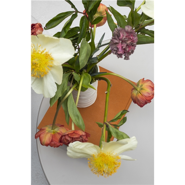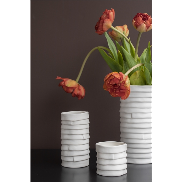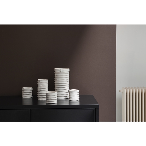 RIBBON ist eine Porzellanserie, die auf der handgefertigten Keramik von Mette Ditmer basiert. Die Originalwerke bestehen aus mehreren Tonbändern, die zu einer Form zusammengesetzt werden, die einen einfachen und schönen Ausdruck hat. Man kann den handgefertigten Look mit Fingerabdrücken auf der rohen und unglasierten Oberfläche spüren, was einen schönen Kontrast zur glasierten Innenseite der Produkte bildet. Die große RIBBON-Vase ist perfekt für schöne Blumen das ganze Jahr über, aber sie ist auch besonders schön mit Winterzweigen, die mit etwas Weihnachtsschmuck verziert sind.