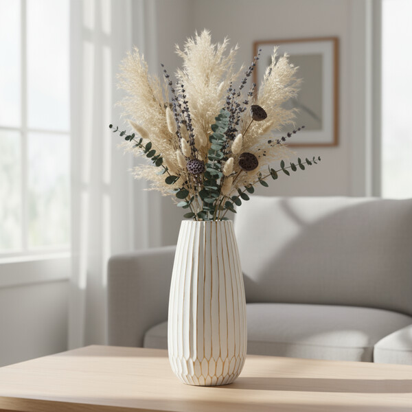 Einzigartige Textur: Verfügt über eine wunderschön strukturierte Oberfläche mit vertikalen Rillen und einem unteren Muster, ideal, um Ihrer Einrichtung eine organische Eleganz zu verleihen.