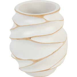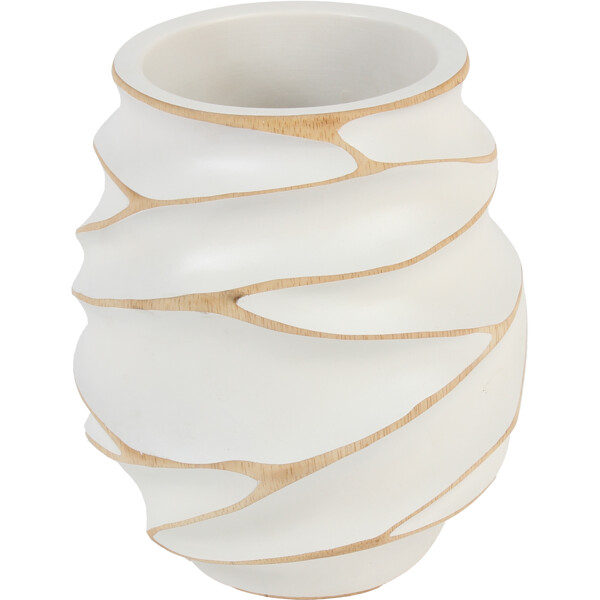 Erhöhen Sie Ihr Zimmer mit der dynamischen Eleganz und dem handwerklichen Charme dieser einzigartigen handgefertigten Holzdekorvase. Sorgfältig in Thailand hergestellt, besitzt sie ein markantes Spiraldesign in Weiß, das die natürlichen Holztöne darunter wunderschön zur Geltung bringt und einen faszinierenden visuellen Fluss und eine interessante Textur schafft. Diese umweltfreundliche Vase ist das Ergebnis echten Handwerks und eignet sich perfekt, um Ihr Zuhause mit nachhaltiger Kunst und modernem Reiz zu bereichern. Erhältlich in verschiedenen Größen.