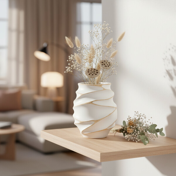 Einzigartige Textur: Präsentiert eine faszinierende Spiraltextur und eine elegante Form, ideal, um Ihrer Einrichtung Tiefe, Bewegung und organische Eleganz zu verleihen.