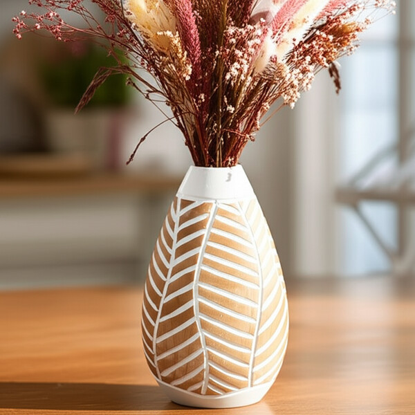 Künstlerisches Design: Zeigt ein faszinierendes, von Blättern inspiriertes Muster und eine sanfte Silhouette, die Ihrer Inneneinrichtung eine harmonische und moderne Ästhetik verleiht.