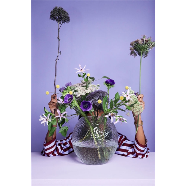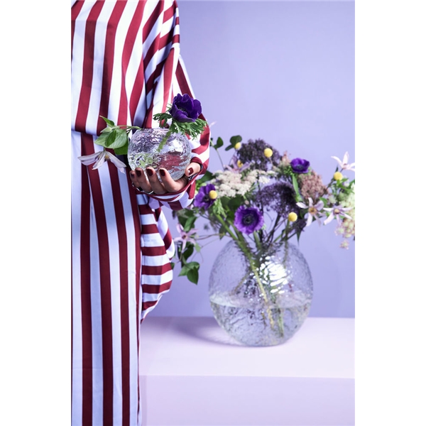Eine Vase, die eigenständig mit einer frechen Zerbrechlichkeit ist. Schön mit einem großen Blumenstrauß oder einem einfachen Zweig. Hergestellt aus handgefertigtem und mundgeblasenem Klarglas.