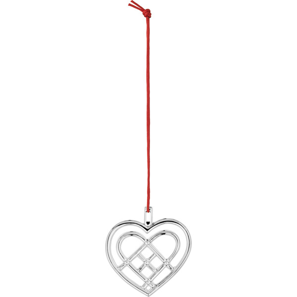 Klassische Weihnachtsdekoration mit einem künstlerischen Twist. Rosendahls Karen Blixens Weihnachten ist für viele die eigentliche Definition eines gemütlichen und traditionellen Weihnachtsfestes – voller Geschichte und Weihnachtssymbolik, die die Weihnachtsfreude bis Heiligabend aufrechterhält. Ole Kortzau schuf seinen ersten Karen Blixen-Weihnachtsschmuck im Jahr 2007. Jedes Jahr kommen neue Dekorationen in der speziellen handgefertigten Qualität hinzu, die mit Sorgfalt und einem Auge für Details geschaffen werden, sodass jedes Schmuckstück als kleines Kunstwerk für sich steht. Sie sind mit echtem Silber und Gold plattiert, und die Kollektion 2024 enthält unter anderem dieses versilberte „geflochtene Weihnachtsherz“, das sich mit einem größeren Herz verbindet und von diesem umgeben ist – ein Symbol für Liebe und Gemeinschaft während der Weihnachtszeit. Genau wie die anderen kleinen Anhänger der Serie ist es etwa 7 cm hoch und eignet sich perfekt als Fensterdekoration. Die Motive in Karen Blixens Weihnachten sind oft eine Liebeserklärung an die kindliche Sicht auf Weihnachten. Obwohl Ole Kortzaus Weihnachtsgeschichten auf der Realität basieren, zeigen sie nicht genau, wie es ist, weshalb es auch einen magischen Twist in den Motiven gibt. Sie sind immer ein wenig schief, ein wenig hintergründig. Ole Kortzau möchte, dass wir innehalten, eine Pause machen – und all die klassischen Charaktere auf eine andere Weise entdecken. Das geübte Auge wird bemerken, dass die beiden Herzen mit den Worten des Designers „ganz krumm und schief“ sind. Diese Weihnachtsdekoration wird mit einem schönen roten Band geliefert.