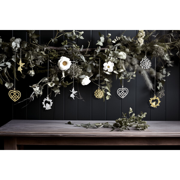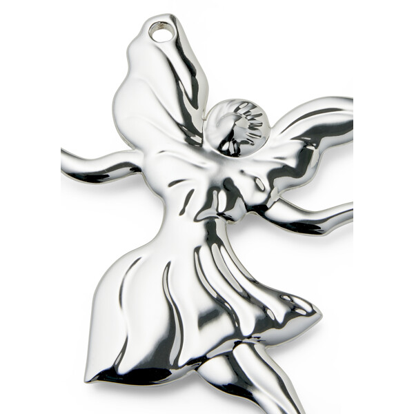 Klassischer Weihnachtsschmuck mit einem künstlerischen Twist. Rosendahls Karen Blixens Weihnachten ist für viele die eigentliche Definition eines gemütlichen und traditionellen Weihnachtsfestes – voller Geschichte und Weihnachtssymbolik, die die Weihnachtsfreude bis Heiligabend aufrechterhält. Ole Kortzau entwarf seinen ersten Karen Blixen-Weihnachtsschmuck im Jahr 2007. Jedes Jahr kommen neue Dekorationen in der speziellen handgefertigten Qualität hinzu, die mit Sorgfalt und einem Auge für Details geschaffen werden, sodass jedes Schmuckstück als kleines Kunstwerk für sich erscheint. Sie sind mit echtem Silber und Gold plattiert, und die diesjährige Kollektion enthält unter anderem diesen versilberten „tanzenden Engel“, der auf eine schöne und schwebende Weise die Magie hinzufügt, die Weihnachten zu etwas ganz Besonderem macht. Der tanzende Engel hat eine liebliche Leichtigkeit, die oft mit Karen Blixens Schriftstellerei in Verbindung gebracht wird, und man kann fast die Weihnachtsmusik hören, zu der der Engel tanzt. Genau wie die anderen kleinen Anhänger in der Serie ist er etwa 7 cm hoch und eignet sich perfekt als Fensterdekoration. Die Motive in Karen Blixens Weihnachten sind oft eine Liebeserklärung an die kindliche Sicht auf Weihnachten. Auch wenn Ole Kortzaus Weihnachtsgeschichten auf der Realität basieren, zeigen sie nicht genau, wie es ist, daher gibt es auch einen magischen Twist in den Motiven. Sie sind immer ein wenig schief, ein wenig hintergründig. Ole Kortzau möchte, dass wir innehalten, eine Pause machen – und all die klassischen Charaktere auf eine andere Weise entdecken. Diese Weihnachtsdekoration wird mit einem feinen roten Band geliefert.