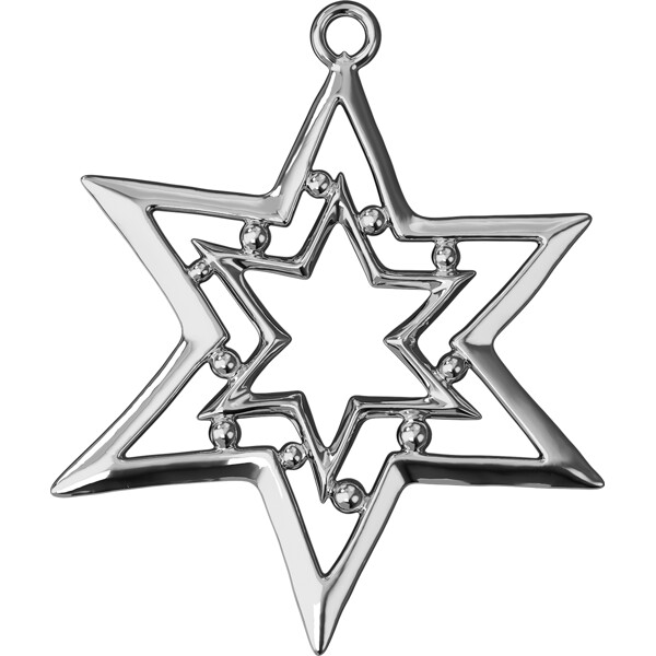 Klassische Weihnachtsdekoration mit einem künstlerischen Twist. Für viele ist Rosendahls Karen Blixens Weihnachten die Essenz eines gemütlichen und traditionellen Weihnachtsfestes – voller Geschichte und Weihnachtssymbolik, die die Weihnachtsfreude bis Heiligabend lebendig hält. Ole Kortzau schuf seine erste Karen Blixen-Weihnachtsdekoration bereits 2007. Und jedes Jahr kommen neue Anhänger in der charakteristischen handgefertigten Qualität hinzu, die mit Sorgfalt und einem Auge für Details entwickelt werden, sodass jeder Anhänger als kleines Kunstwerk für sich erscheint, veredelt mit echtem Silber und Gold. Die Kollektion von 2025 enthält unter anderem diesen versilberten rollenden Stern, der elegant schwebt und dem Dezember einen Hauch von Magie verleiht, der die Weihnachtszeit ganz besonders macht. Der rollende Stern ist inspiriert von der klassischen Weihnachtsgeschichte des Sterns von Bethlehem, der den drei Weisen den Weg wies – ein ikonisches Symbol für Weihnachten und ein ewiges Licht der Hoffnung und Freude. Der Anhänger misst 8 cm in der Höhe und funktioniert sowohl allein als auch zusammen mit anderen kleinen Anhängern in der Kollektion – perfekt sowohl als Fensterdekoration als auch im Weihnachtsbaum. Die Motive in Karen Blixens Weihnachten sind oft eine Liebeserklärung an die kindliche Sicht auf Weihnachten. Und obwohl Ole Kortzaus Weihnachtsgeschichten in der Realität verankert sind, sind sie nicht die Realität. Daher haben die Motive immer einen kleinen Twist, eine Prise Humor. Ole Kortzau möchte, dass wir innehalten, eine Pause einlegen – die Magie der Weihnacht genießen und die klassischen Figuren in einem neuen Licht wiederentdecken. Dieser Weihnachtsanhänger wird mit einem schönen roten Band geliefert.