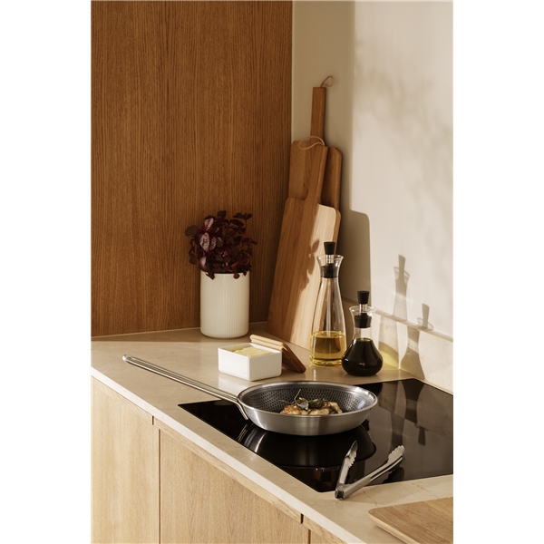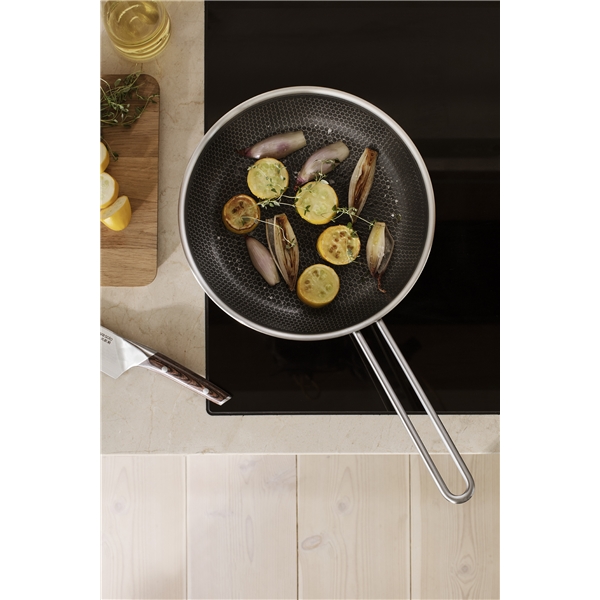 Unverzichtbare Allround-Bratpfanne mit bahnbrechender keramischer Beschichtung, die die Pfanne außergewöhnlich strapazierfähig macht. Das einzigartige Mosaikmuster der Pfanne besteht aus Edelstahl oben und einer keramischen Slip-Let®-Beschichtung unten und ist für Metallutensilien geeignet. Die Beschichtung ermöglicht es, die Fettmenge zu reduzieren, sorgt für die perfekte Bratfläche und erleichtert die Reinigung. Die Bratpfanne hat eine 3-Schicht-Konstruktion, die eine optimale Wärmeverteilung gewährleistet, und eine harte Außenseite, die Abnutzung und Gebrauch standhält. Verwenden Sie die Pfanne für alles, von Spiegeleiern bis hin zu Hackfleisch- und Gemüsefrikadellen. Die Pfanne ist ofenfest bis zu 400 °C und für alle Wärmequellen einschließlich Induktion geeignet.