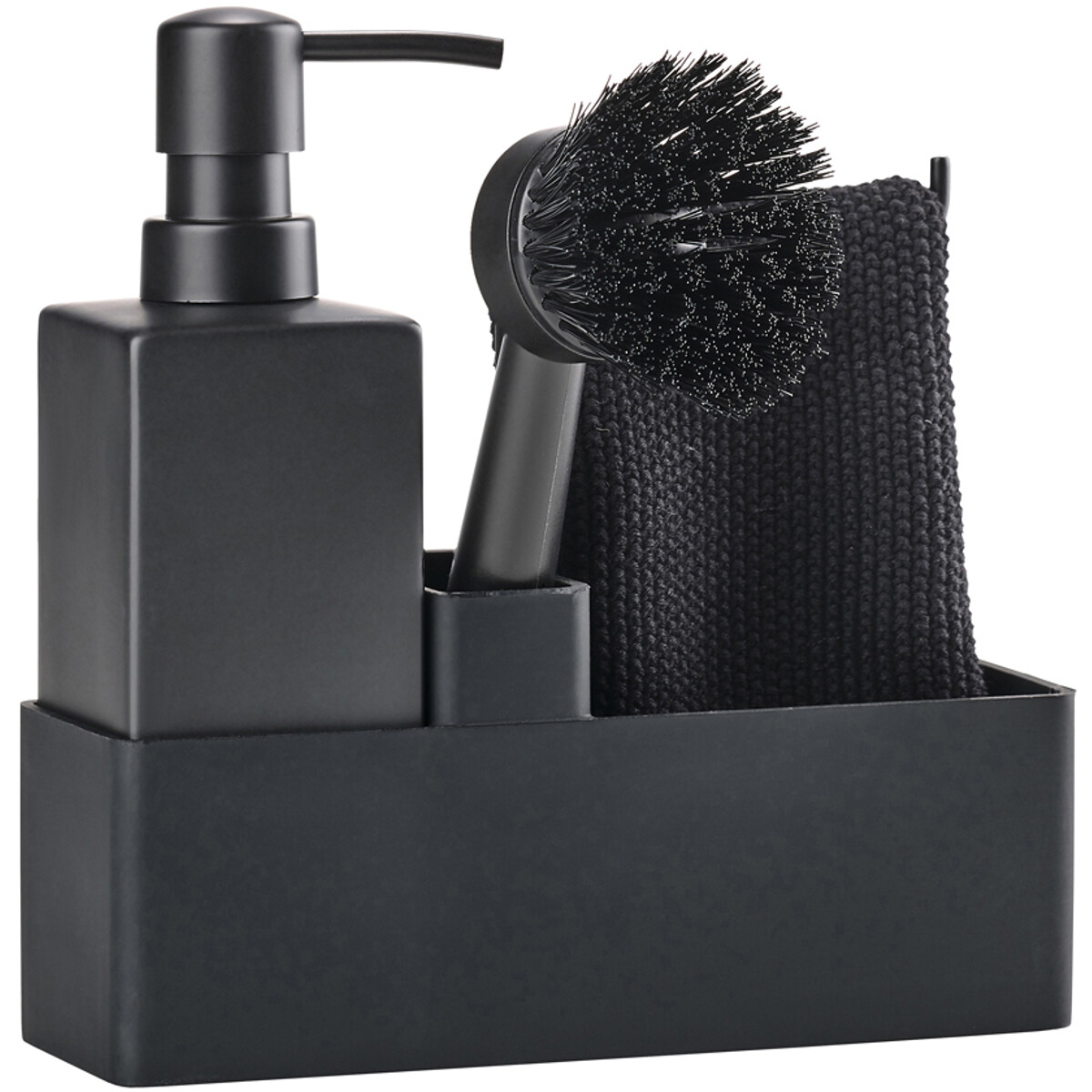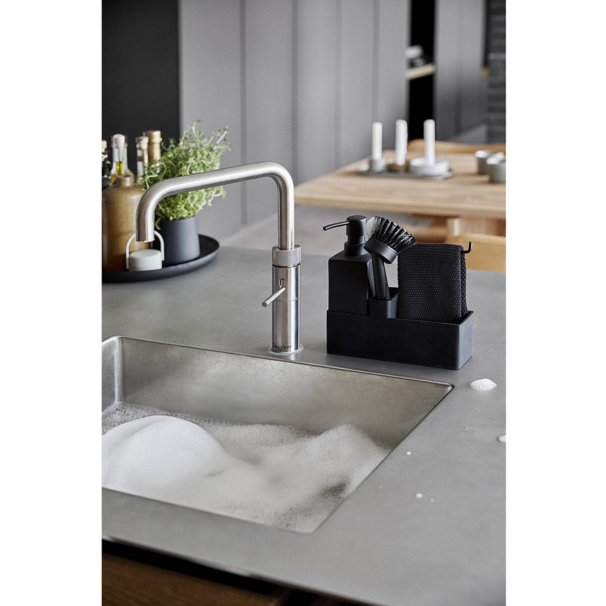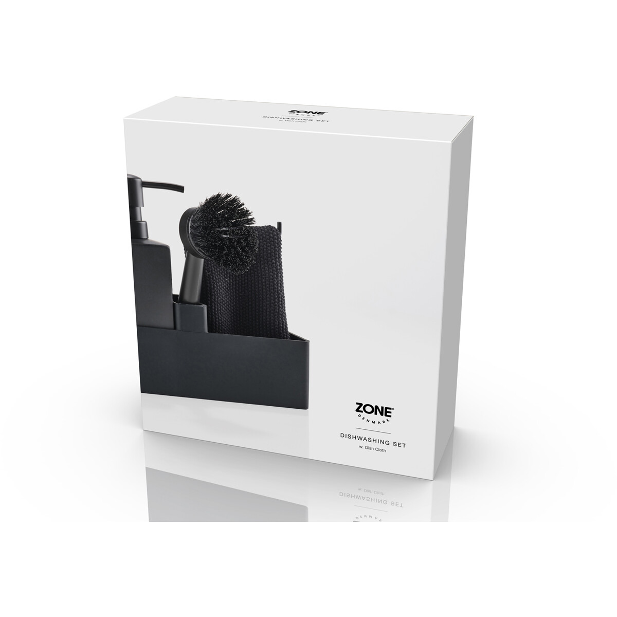 Zones beliebtes All-in-One-Spülset mit Spültuch. Die Seifenpumpe besteht aus robuster Keramik, und der Behälter ist aus kratzfreiem Silikon, das leicht zu reinigen ist. Die Bürste kann selbstständig stehen und der Bürstenkopf kann ausgetauscht werden, sodass Sie immer eine frische Bürste haben.