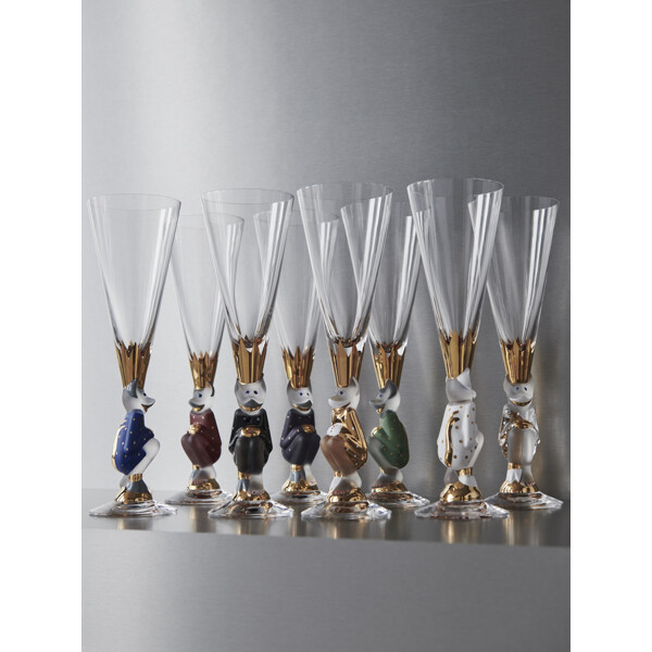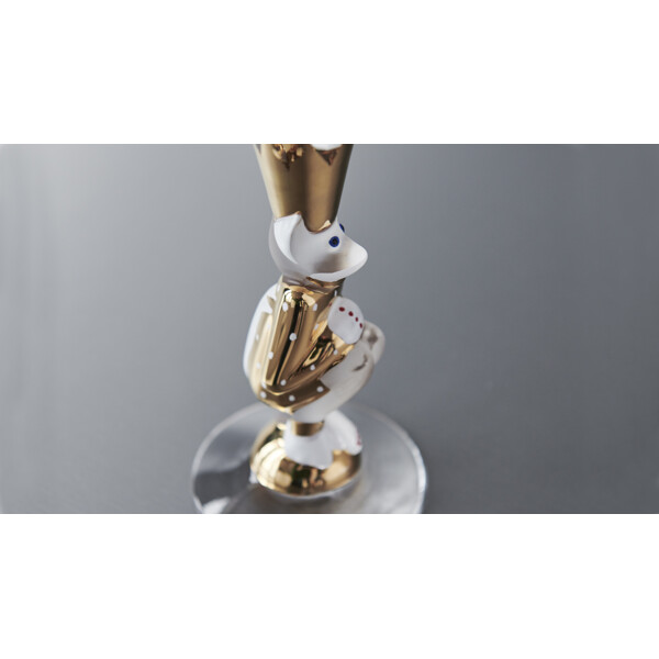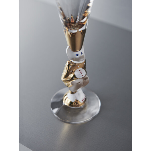 Nach dem Tod von Gunnar Cyrén im Jahr 2013 fanden seine Söhne eine große Anzahl von Skizzen für Champagnergläser, inspiriert von den Schnapsgläsern der Serie "Snapsdjävlarna" von Orrefors. Die ausgewählte Skizze hat Gläser in mehreren Farbvariationen hervorgebracht. The Sparkling Devil ist mundgeblasen in Schweden und von Hand mit 21 Karat echtem Gold bemalt.