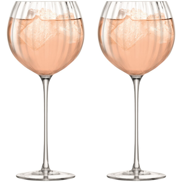 Set mit zwei mundgeblasenen, fein geriffelten Trinkgläsern. Geeignet für verschiedene Arten von Getränken, besonders für Gin-Drinks.