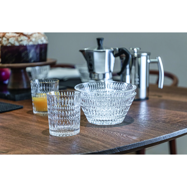 Hergestellt mit hoher Präzision aus Kristallglas von feinster Qualität. Ein schönes, robustes und vielseitiges Glas, das jedem Anlass – vom Morgenkaffee bis zum abendlichen Drink – ein Gefühl von Eleganz verleiht.