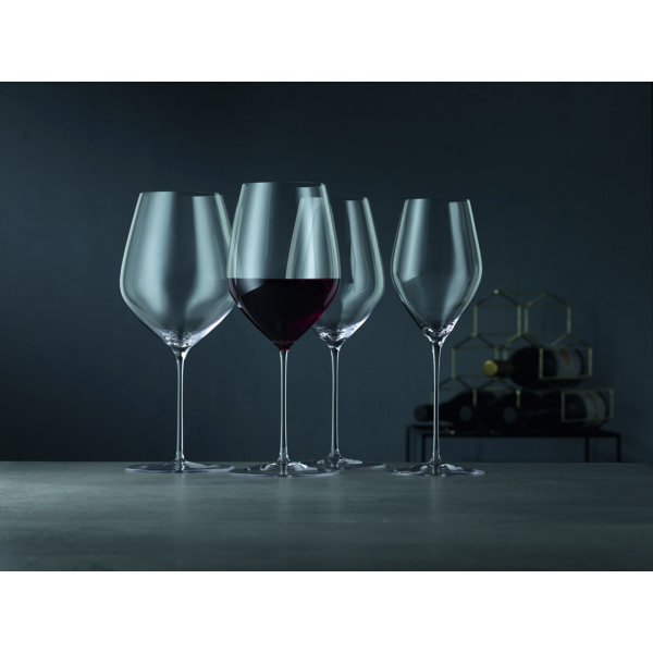 Entdecken Sie das HI-LITE Bordeauxglas von Spiegelau, ideal für mittelkräftige bis kräftige, komplexe Rotweine, die reich an Tanninen sind. Die großzügige Größe des Glases ermöglicht es, dass sich das Bouquet des Weins voll entfaltet, die rauen Kanten geglättet werden, die Frucht hervorgehoben und die Eigenschaften der bitteren Tannine gemildert werden, wodurch der Wein eine harmonische Balance erreicht.
