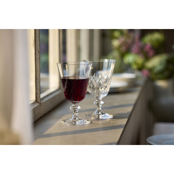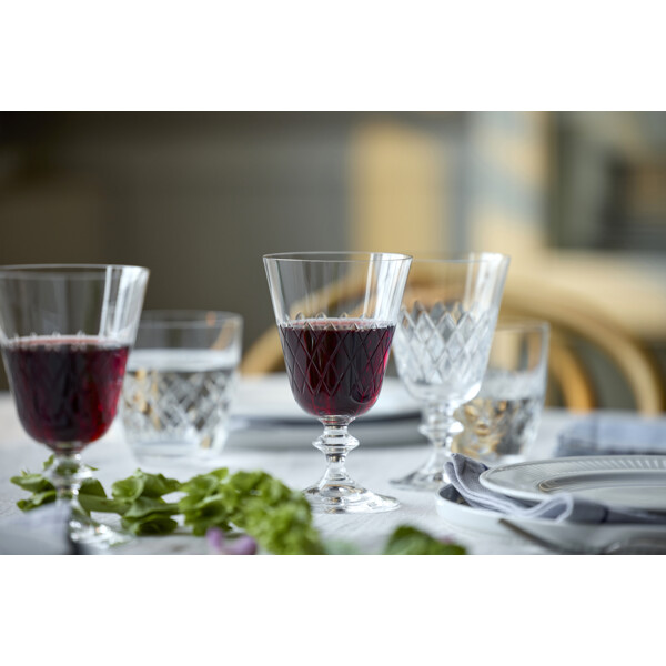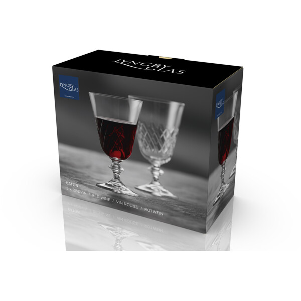 Das Eaton Rotweinglas, 26 cl, interpretiert das klassische diamantförmige Muster des ikonischen Eaton-Glases neu, das Lyngby Glas in den 1960er Jahren entworfen hat. Die zeitlose Ästhetik des Designs vereint klassischen Charme mit modernem Stil und verleiht dem Tisch eine ganz besondere Atmosphäre. Hergestellt aus Kristallglas bietet Eaton außergewöhnliche Klarheit und Haltbarkeit, was das Glas zu einem Vergnügen macht – egal ob für ein gemütliches Abendessen unter der Woche oder einen festlichen Abend mit Freunden. Der kurze Stiel des Glases sorgt für zusätzliche Stabilität und macht es angenehm zu halten. Eaton wird in Europa mit großer Präzision durch einen fortschrittlichen Produktionsprozess hergestellt, der maschinelles Schleifen und Polieren umfasst. Das Ergebnis ist eine hohe Klarheit und ein exklusives Finish, das die schlichte Eleganz des Glases hervorhebt.