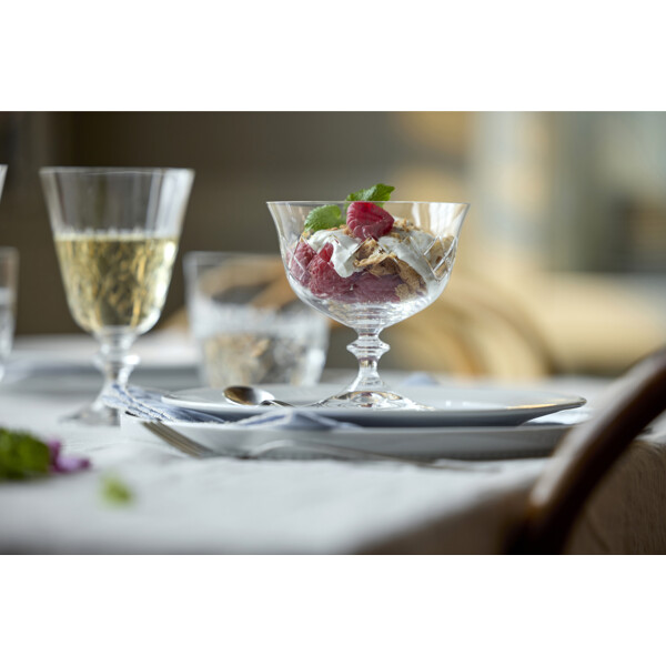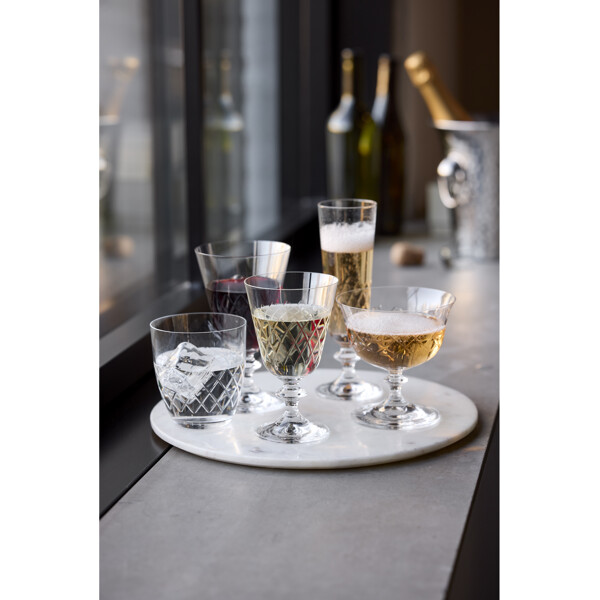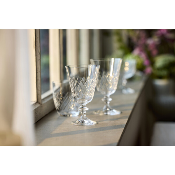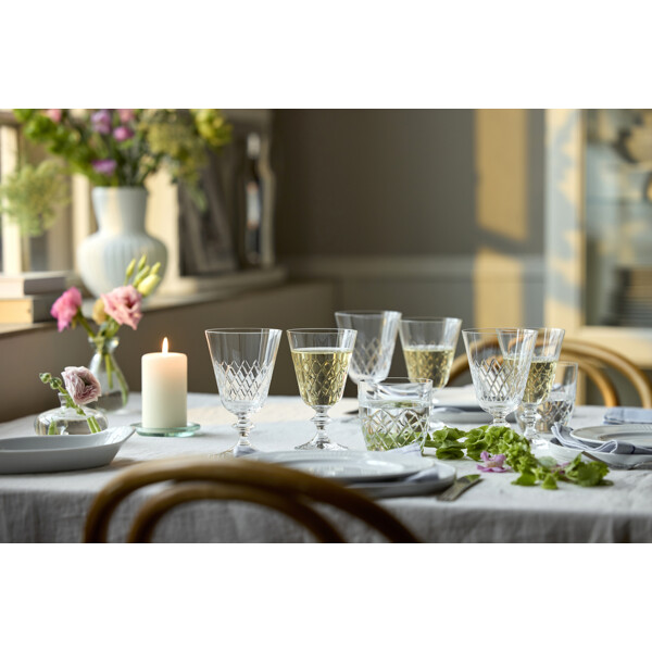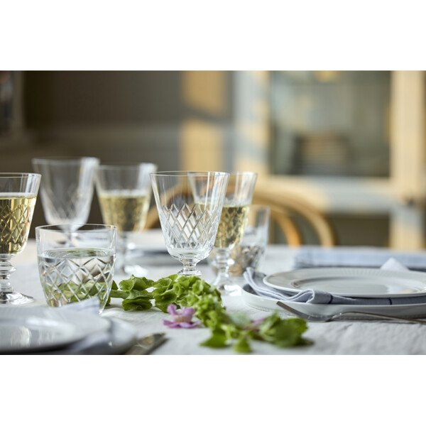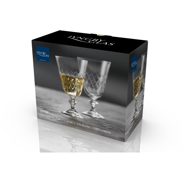 Das Eaton Weißweinglas, 23 cl, interpretiert das klassische diamantförmige Muster des ikonischen Eaton-Glases neu, das Lyngby Glas in den 1960er Jahren entworfen hat. Die zeitlose Ästhetik des Designs vereint klassischen Charme mit modernem Stil und verleiht dem Tisch eine ganz einzigartige Atmosphäre. Hergestellt aus Kristallglas bietet Eaton außergewöhnliche Klarheit und Haltbarkeit, was das Glas zu einem Vergnügen macht – egal ob für ein gemütliches Abendessen unter der Woche oder einen festlichen Abend mit Freunden. Der kurze Stiel des Glases sorgt für zusätzliche Stabilität und macht es angenehm zu halten. Eaton wird in Europa mit großer Präzision durch einen fortschrittlichen Produktionsprozess hergestellt, der maschinelles Schleifen und Polieren umfasst. Das Ergebnis ist eine hohe Klarheit und ein exklusives Finish, das die schlichte Eleganz des Glases hervorhebt.