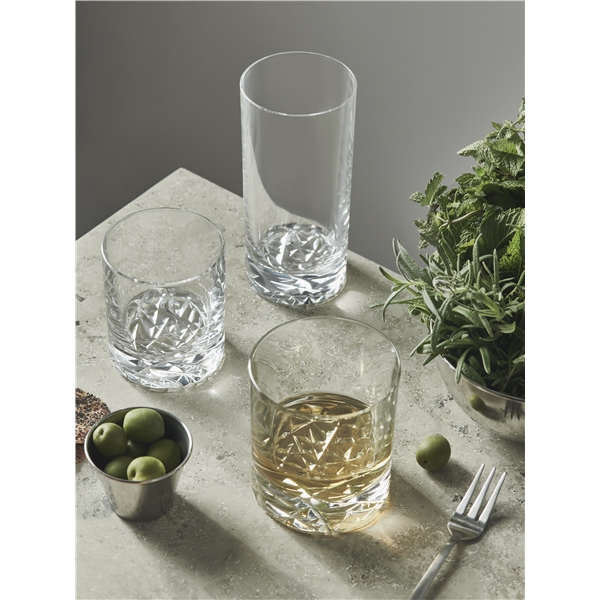 Die Serie Carat basiert auf einer modernen Interpretation des traditionellen Glasschliffs, der Orrefors weltberühmt gemacht hat. Die unregelmäßige Geometrie lässt das Kristallglas funkeln. Das Old-Fashioned-Glas – das auch spülmaschinenfest ist – eignet sich hervorragend für beispielsweise Säfte, Smoothies und Cocktails. Design von Lena Bergström.