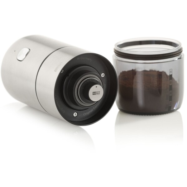 Elektrische Kaffeemühle. Verfügt über ein Keramikmahlwerk. Ein Lithium-Akku ist im Lieferumfang enthalten.