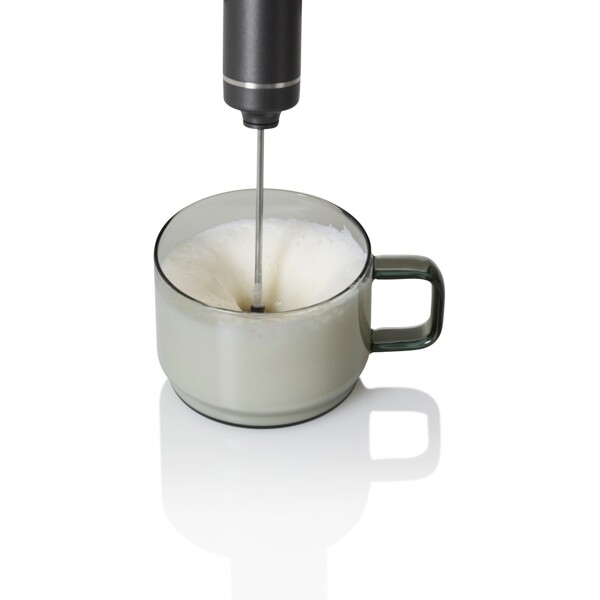 Hochwertiger Milch- und Saucenaufschäumer. Einfach zu bedienen mit nur einem Knopf. Geeignet für: Milch, Saucen, Vinaigrette, Suppen, Cocktails und mehr. Einfache Reinigung mit abnehmbarem Schneebesen und praktischer Aufbewahrung.