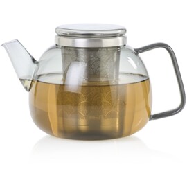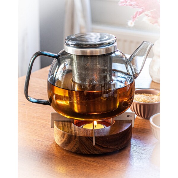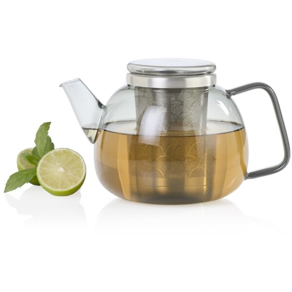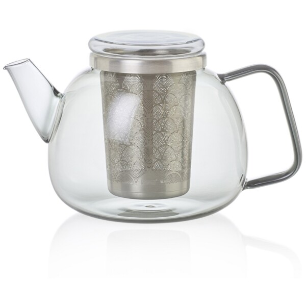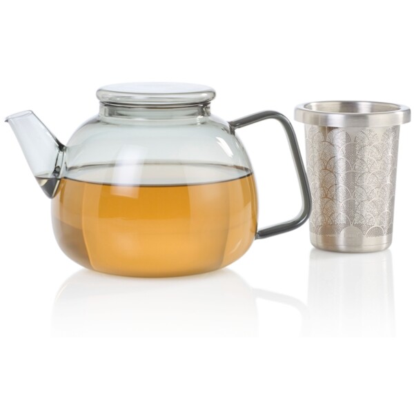 Teekanne mit großem Feinfilter für optimale Aromaentwicklung. Hergestellt aus mundgeblasenem Glas, was jede Kanne einzigartig macht.