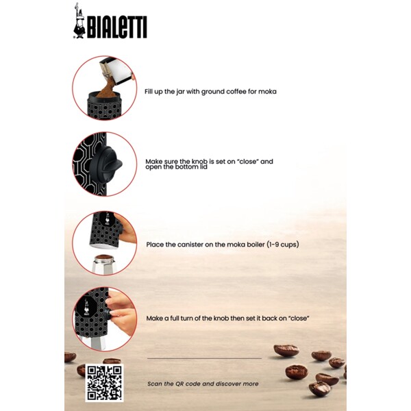 Genießen Sie Ihren Kaffee immer frisch, ohne sich um Verschwendung zu sorgen. Bewahren Sie das Kaffeearoma in der Dose auf, perfekt zum Aufbewahren von gemahlenem Kaffee für später. Sparen Sie Abfall mit einem praktischen System zur Dosierung von Kaffee ohne Rückstände. Kapazität 250 g