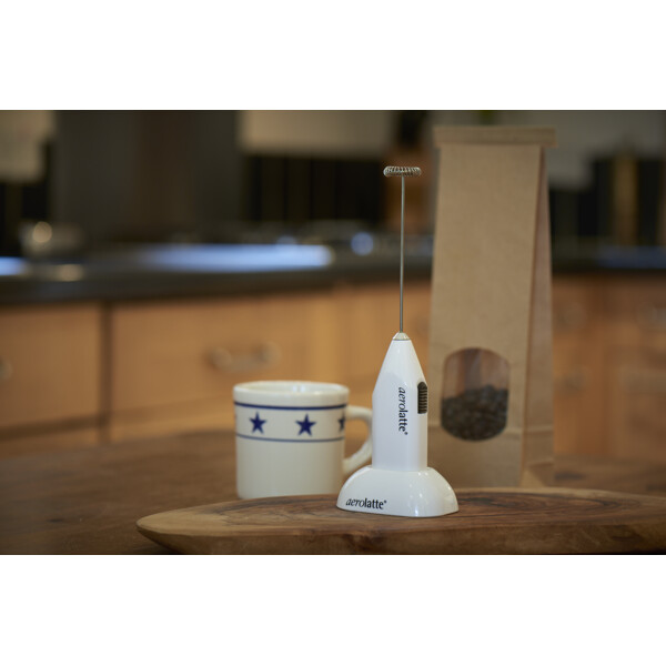 Der Milchaufschäumer erzeugt in nur 20 Sekunden reichhaltigen und cremig aufgeschäumten Milchschaum. Der Schneebesen ist ein Originaldesign von Aerolatte und eignet sich zum Aufschäumen sowohl von tierischer als auch pflanzlicher Milch. Der Milchaufschäumer verfügt über einen langlebigen Schaft und einen robusten Motor. Der Halter ist ein praktisches Stativ für den Milchaufschäumer und wird zu einem stilvollen Einrichtungselement auf der Küchenarbeitsplatte. Halter und 2 AA-Batterien sind im Lieferumfang enthalten.