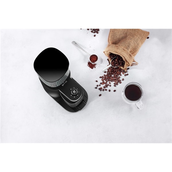 Die Enfinigy Kaffeemühle von Zwilling ermöglicht es Ihnen, zu Hause als Barista zu agieren. Die Kaffeemühle mahlt Ihre Bohnen direkt bevor Sie Ihren Kaffee zubereiten, sodass Sie den köstlichen Kaffeegeschmack besonders genießen können. Die Mühle aus Edelstahl kann die Kaffeebohnen in 140 verschiedene Mahlgrade mahlen, sodass Sie Ihren Kaffee an die Bohne und die Zubereitungsmethode anpassen können, zum Beispiel French Press, Filterkaffee oder Espresso. Sie können auch die Anzahl der Tassen anpassen, um die gewünschte Menge von 1 bis 12 Tassen zu portionieren. Die Mühle passt zur Zwilling Enfinigy Kaffeemaschine. Das minimalistische Design wurde von dem Design-Duo Matteo Thun & Antonio Rodriguez entworfen und passt zur gesamten ENFINIGY-Serie.