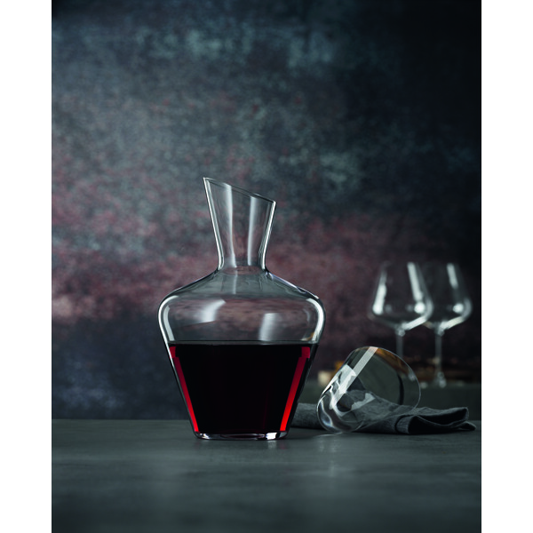 Definition Weinkaraffe mit Stopfen 1 Liter von Spiegelau ist eine wunderschöne Dekantierkaraffe aus mundgeblasenem Kristallglas mit einem Design, das sich in den Gläsern derselben Serie widerspiegelt. Die Weinkaraffe ermöglicht es Ihnen, den Wein vor dem Servieren zu belüften, was das Geschmackserlebnis verbessert. Kombinieren Sie die Weinkaraffe gerne mit den anderen Teilen der Definition-Serie für eine einheitliche Tischdekoration.